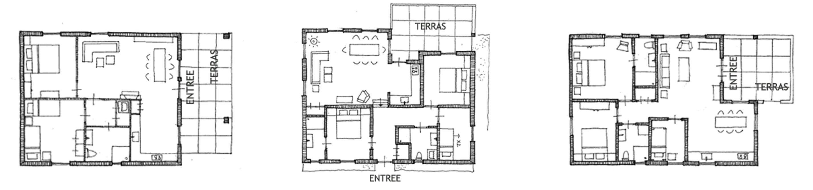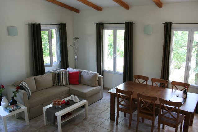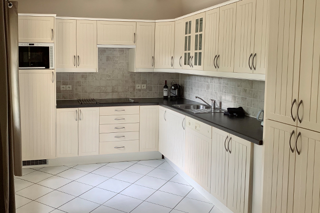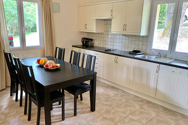 ‘Maison Deux’ is de kleinste met 2 slaapkamers en 1 badkamer. De andere twee bungalows ( ‘Maison Onze’ en ‘Maison Treize’) hebben elk 3 slaapkamers en 2 badkamers. De compleet ingerichte keukens zijn allemaal voorzien van een grote koelkast, vaatwasser, magnetron en een elektrische kookplaat. Ook ontbreekt een wasmachine niet. In iedere Maison staat een flatscreen tv met een Canal Digital aansluiting.